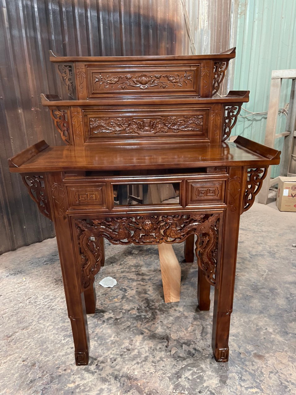 BÀN THỜ GIA TIÊN 3 TẦNG GỖ TRÀM 1M07